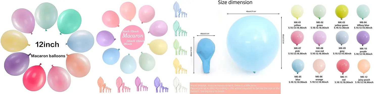 12 इंच मॅकरॉन लेटेक्स बलूनचा तपशीलवार डेटा
