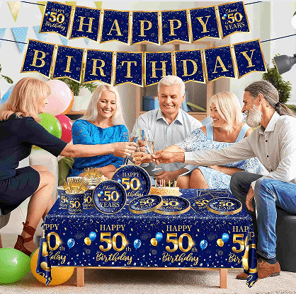 पेपर बर्थडे टॉपर: केक डेकोरेशनचा मुख्य आयटम म्हणून, मुख्य कार्ड "50 वर्षांच्या वाढदिवसाच्या शुभेच्छा" हे शब्द कोर म्हणून घेते आणि फटाके, तारे, वाढदिवसाची टोपी आणि इतर आकारांसह मुख्य केक सजावटशी जुळते. सपोर्टिंग राउंड "50", शुभ ढग, मुकुट आणि इतर मिनी कार्ड्स, जाड पुठ्ठ्याने बनवलेले आणि घन बांबूच्या काड्यांसह जुळलेले, उत्कृष्ट तपशीलांसह कपकेक आणि डेझर्ट टेबल्सने सजवले जाऊ शकतात.