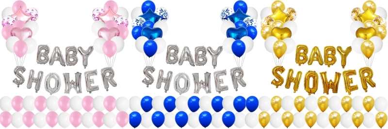 लक्ष आणि चेतावणी: कृपया फुगे जास्त भरू नका आणि सूर्यप्रकाश, जास्त गरम, टोकदार वस्तू आणि जास्त घर्षण टाळा. तुमचा आदर्श फुग्याचा आकार साध्य करण्यासाठी प्रत्येक फुग्यामध्ये हवेचे प्रमाण नियंत्रित करा, तुमच्या बाळाच्या शॉवर पार्टीचा आनंद घ्या.