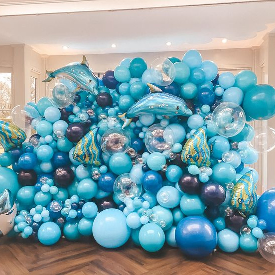 3. मॉडेलिंग बलून:शार्क फॉइल बलूनसह बलून गारलँडमध्ये, मॉडेलिंग बलून वेगवेगळ्या आकारांना आकार देऊ शकते आणि ऑक्टोपस प्रतिमा तयार करण्यासाठी लेटेक्स बलूनसह एकत्र केले जाऊ शकते. त्याच वेळी, आपण आपल्या कल्पनेचा वापर आपल्या आवडीच्या कोणत्याही प्रकारचे सागरी प्राणी तयार करण्यासाठी देखील करू शकता.