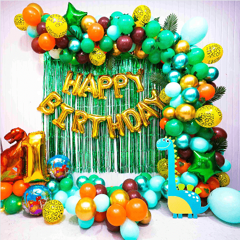 बर्थडे पार्टी बलून कमान थीम पेपर बॅनर, टॅसेल्स, फॉइल बलून कॉलम्स, टेबलक्लोथ, बॅकड्रॉप इत्यादींसह जुळविली जाऊ शकते.