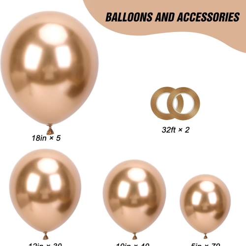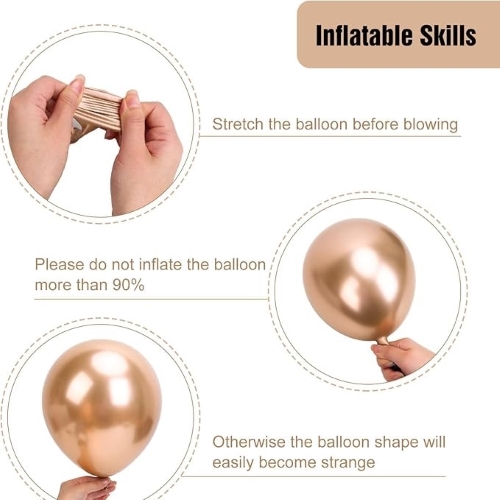 शॅम्पेन बलून आर्कमध्ये कमीत कमी 100-150 उच्च-गुणवत्तेचे फुगे पुरेशा प्रमाणात एक भव्य आणि पूर्ण दिसणारी व्यवस्था तयार करतात. एकदा एकत्र केल्यावर, ते एक मोहक आणि वातावरणीय पार्टी सेटिंग तयार करते. आपण खालील फोटोवरून पाहू शकता.
