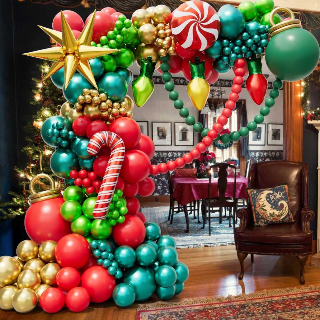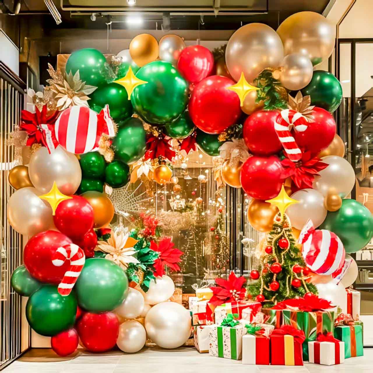 ख्रिसमस बलून कमानीविस्तृत प्रकारात या. त्यामध्ये केवळ लेटेक्स बलून, फॉइल बलून, मुद्रित बलून आणि जादूचे बलून समाविष्ट नाहीत तर पार्श्वभूमी कपड्यांच्या सजावटच्या संयोजनात देखील वापरले जाऊ शकतात.