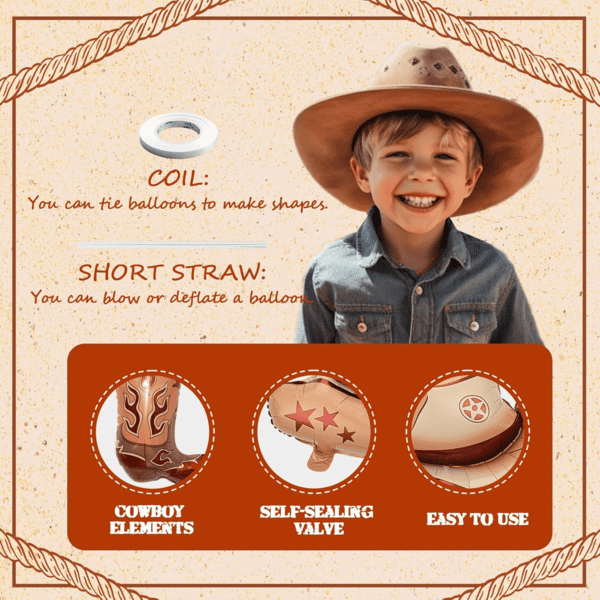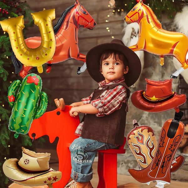 हेलियमसह काउबॉय फॉइल फुगे:काउबॉय फॉइल फुगे आणि संबंधित लेटेक्स फुगे हेलियमने भरा, ते फ्लोटेड अप इफेक्ट ठेवतील. स्टोअरमध्ये ठेवलेले असो किंवा रस्त्यावर प्रदर्शित केले असो, ते सर्वांचे लक्ष वेधून घेऊ शकते. देखणा घोडा फॉइल फुगे, काउबॉय हॅट फॉइल फुगे रुंद काठोकाठ, आणि काउबॉय बूट फॉइल फुगे ज्वाळांनी जळत आहेत - हे सर्व फक्त अप्रतिरोधक आहेत.