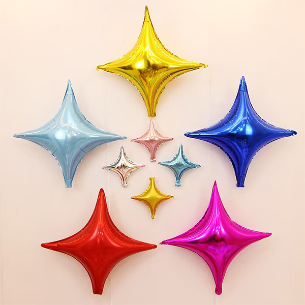फोर एंगल स्टार फॉइल बर्थडे बलून वेगळे सजावटीचे घटक नाहीत. त्यांचे फोर एंगल स्टार आकार केवळ सध्याच्या फॅशन ट्रेंडमध्येच बसत नाहीत तर बोरुन आणि विविध रंगांच्या इतर उत्पादनांशी देखील जुळतात, ज्यामुळे ते भिन्न थीम असलेल्या पक्षांसाठी योग्य आहेत.