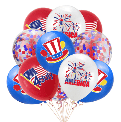 सेटमध्ये तारेच्या आकाराचे, प्रेमाच्या आकाराचे, ध्वजाच्या आकाराचे आणि इतर विशेष आकाराचे फुगे देखील समाविष्ट आहेत. क्लासिक सर्कल आणि सर्जनशील विशेष-आकाराचे फुगे यांचे संयोजन विविध सजावटीच्या गरजा पूर्ण करते आणि सहजपणे अद्वितीय स्वातंत्र्य दिन सजावट देखावे तयार करते.