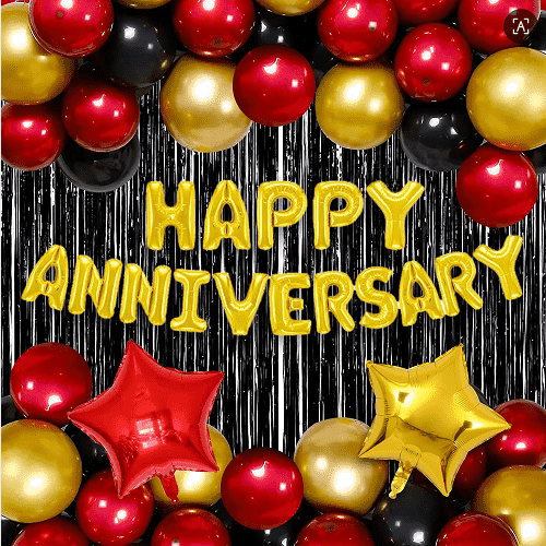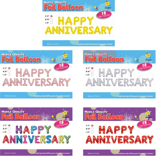 हॅपी ॲनिव्हर्सरी फॉइल फुग्यासाठी शोभेसाठी 16 इंच, मुख्य पार्श्वभूमीसाठी 32 इंच आणि मोठ्या पार्टीसाठी 40 इंच.