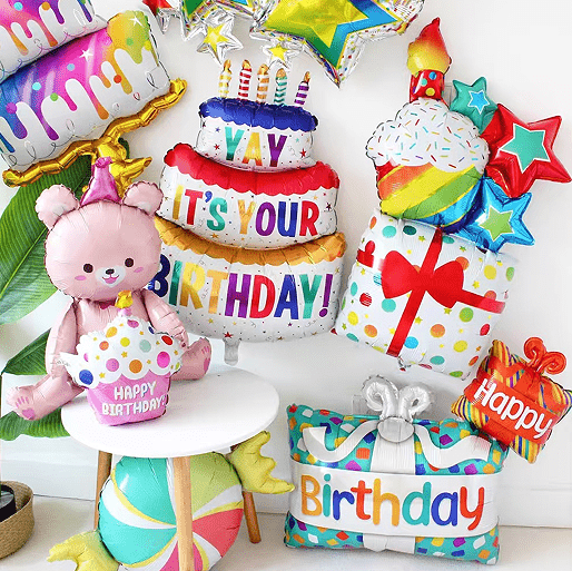 वाढदिवसाच्या शुभेच्छा फॉइल बलूनमध्ये अधिक मजबूत व्हिज्युअल प्रभाव आणि उच्च-स्तरीय भावना आहे, उत्पादन उच्च-ग्लॉस ॲल्युमिनियम फॉइल सामग्रीचे बनलेले आहे, पृष्ठभाग एक धातूचा पोत प्रस्तुत करतो, चांगला परावर्तित प्रभाव, प्रकाशाखाली चमकणारा, पार्टीचे केंद्रबिंदू बनू शकतो. क्लासिक मॉडेल्स "18", "30" आणि "60" सारख्या हॅपी बर्थडे अक्षरांचा फुगा आणि वाढदिवसाच्या शुभेच्छा क्रमांकाच्या फुग्यांचा संपूर्ण संच आहे. मॉडेलिंग मॉडेल्समध्ये केक, प्रेम, तारे, कार्टून पात्रे, प्राणी इत्यादींचा समावेश आहे, जे मुलांच्या आणि प्रौढांच्या वेगवेगळ्या थीम गरजांसाठी योग्य आहेत.