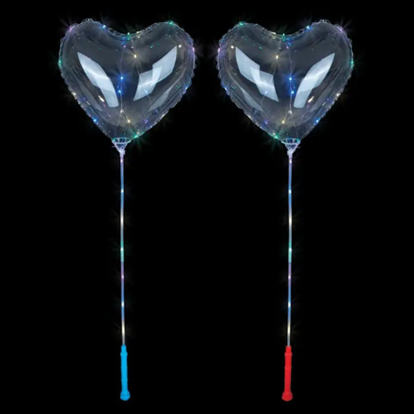 या हृदयाच्या आकाराच्या बोबो बलून रोझ सेटसाठी, आमच्याकडे बोबो बलून टो पोल आणि एक लाईट बॉक्स देखील आहे. बलून टो रॉडमध्ये 35 सेमी रॉड, फुग्याचा कप आणि एक लहान प्लास्टिक ट्यूब असते. एलईडी लाइट 2 एए बॅटरीद्वारे समर्थित आहे, बॅटरी वितरणाच्या व्याप्तीमध्ये समाविष्ट नाहीत. लाइट बॉक्स पिवळ्या एलईडी दिवे आणि रंगीत एलईडी दिवे मध्ये विभागलेला आहे. 3 एलईडी ब्लिंकिंग सेटिंग्ज तुम्हाला जलद ब्लिंकिंग, स्लो ब्लिंकिंग आणि ब्लिंकिंग नाही सेट करण्याची परवानगी देतात. अद्भुत मल्टी-ग्रुप इफेक्ट्स मिळविण्यासाठी बलूनवरील सेटिंग्ज बदला.