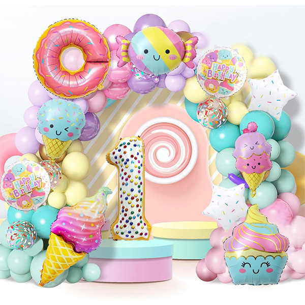 आईस्क्रीम थीम असलेली वाढदिवस, बाळाच्या बाप्तिस्मा पार्टीसाठी आदर्श. तुमची वाढदिवसाची पार्टी आणि तुम्हाला हवे असलेले इतर विशेष कार्यक्रम रंगीबेरंगी लेटेक्स फुग्यांसह सुंदर आइस्क्रीम फुग्यांसह सजवा. तुमची पार्टी अप्रतिम बनवा.