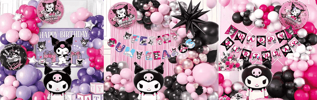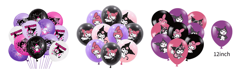 1. सानुकूल कुरोमी पार्टी बलून: फॉइल बलून सानुकूलन (नमुना आणि आकार), बलून आणि पुष्पहार सेटची लेटेक्स बलून प्रिंटिंग आणि स्टाईल डिझाइन प्रदान करा.