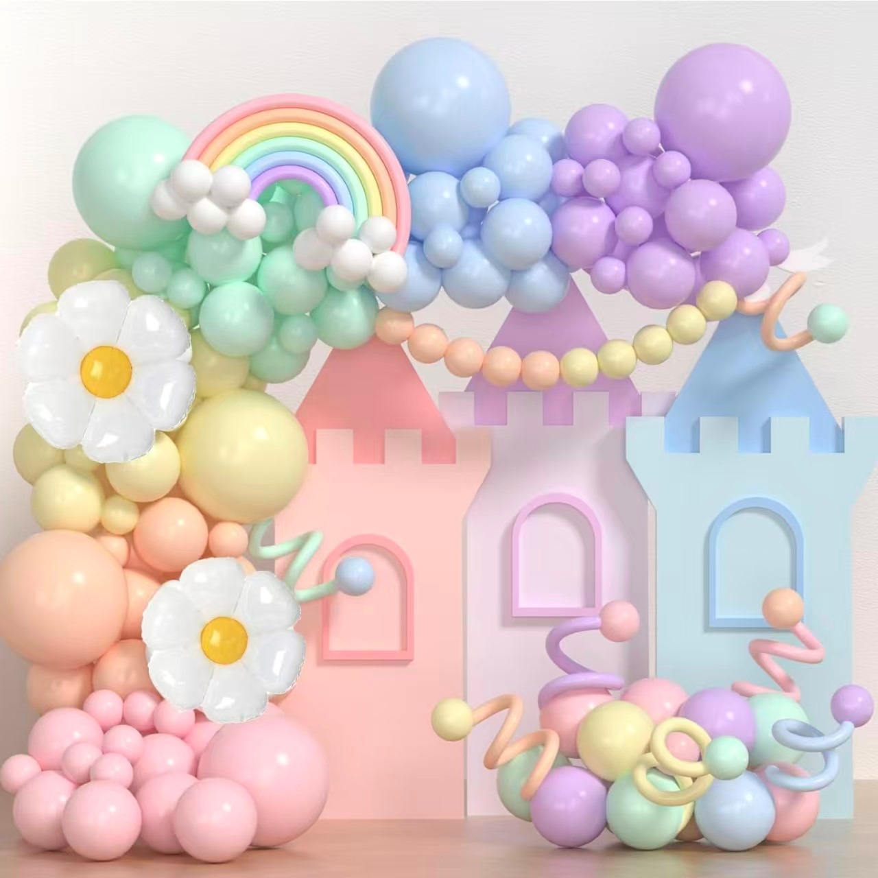 या संयोजनांसह, मॅकरून बलून गारलँड आर्च सौम्य आणि रोमँटिक शैली दर्शवू शकते. ते वेगवेगळ्या प्रसंगी ताजे आणि गोंडस, स्टाईलिश आणि अभिजात किंवा भव्य आणि मोहक स्वरूप देखील तयार करू शकतात.