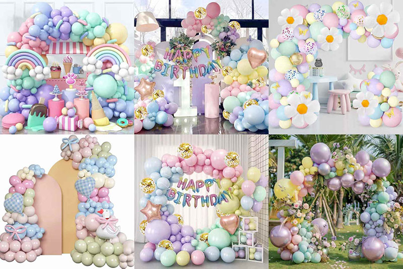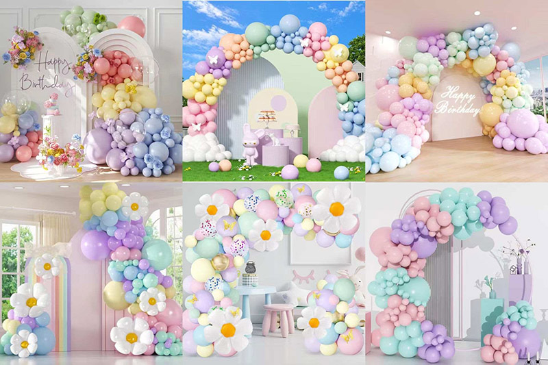 1. शैली: वेगवेगळ्या गरजा बसविण्यासाठी बर्याच मिक्स निवडी केल्या जाऊ शकतात. त्यामध्ये एकल रंग संच, ग्रेडियंट कलर सेट आणि थीम असलेली सेट्स समाविष्ट आहेत. फॉइल बलून आणि लेटेक्स बलूनचे मिश्रण अधिक स्तरित आणि अधिक डोळा पकडू शकते.