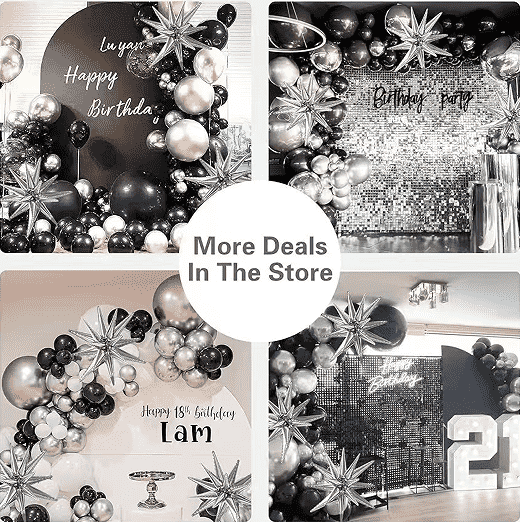 2. रंग: आम्ही विविध प्रकारचे धातूचे रंग, विविध आकाराचे लेटेक्स फुगे, सपोर्ट मोनोक्रोम, मिक्स अँड मॅच किंवा ग्रेडियंट कलर मॅचिंग प्रदान करतो, जसे की ब्लॅक गोल्ड, ब्लॅक सिल्व्हर आणि ब्लू सिल्व्हर इ. इव्हेंटच्या थीमनुसार कस्टमाइझ केले जाऊ शकतात.