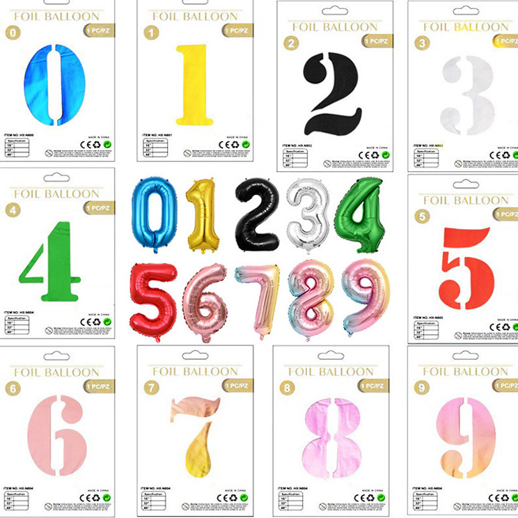 क्रमांक फॉइल बलून: 16 ", 32" आणि 40 "च्या आकारात उपलब्ध.