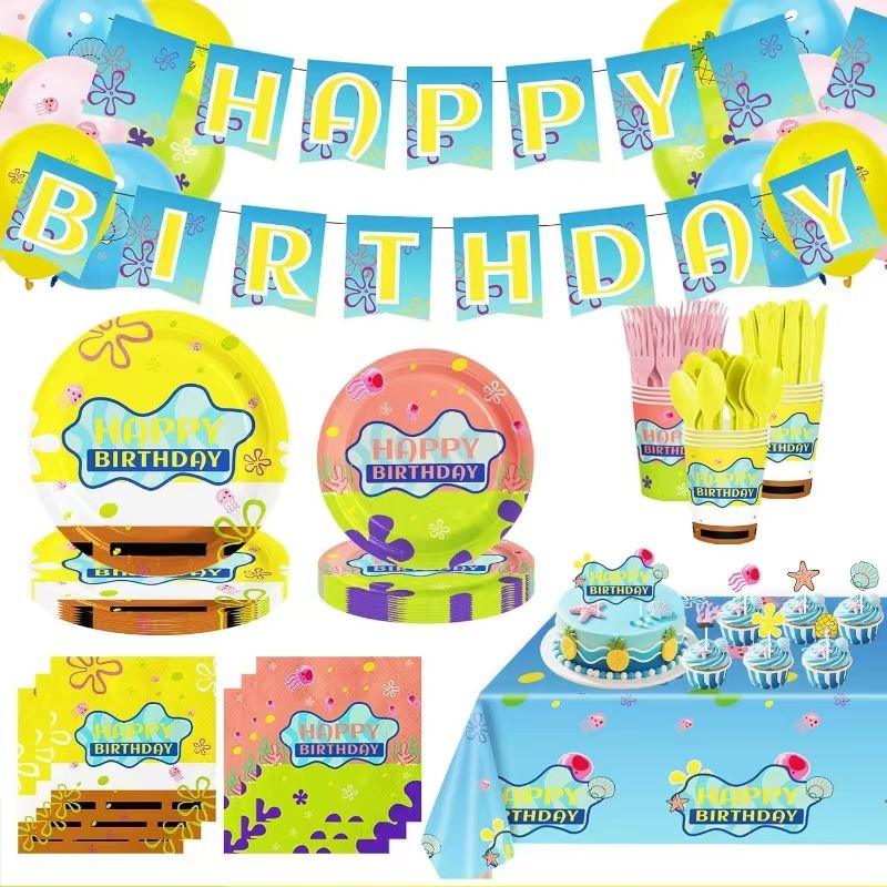 मुलांच्या पार्टी आयटममध्ये, स्पंजबॉब टेबलवेअर सेट एक मजेदार आणि उपयुक्त निवड आहे. यात स्पंजबॉब आणि पॅट्रिक सारख्या प्रसिद्ध वर्ण आहेत ज्यात मुख्य डिझाइन आहे. सेट प्लेट्स, पेपर कप, नॅपकिन्स आणि भांडी घेऊन येतो. प्लेट्समध्ये एक मोठा स्मित आणि एक मजेदार चेहरा असलेले पॅट्रिक स्पंजबॉब दर्शविते. डिझाइनमध्ये समुद्राची शैली आणण्यासाठी जेलीफिश, सीवेड आणि शेल जोडले गेले आहे. रंग चमकदार आणि थर समृद्ध आहेत. पेपर कप आणि नॅपकिन्स समान थीमचे अनुसरण करतात. संपूर्ण टेबल समुद्राच्या मजेने भरलेले दिसते. टेबलवेअर सुरक्षित आणि इको सामग्री वापरते. हे एक गोंडस शैली ठेवते आणि उपयुक्त देखील आहे. हे वाढदिवसाच्या पार्ट्या, थीम असलेली इव्हेंट किंवा कौटुंबिक जेवण फिट करते. सेट मुलांसाठी आनंदी “बिकिनी तळाशी मेजवानी” बनवितो आणि पालकांना एक सोपा आणि उच्च-गुणवत्तेची पार्टी पर्याय देते.